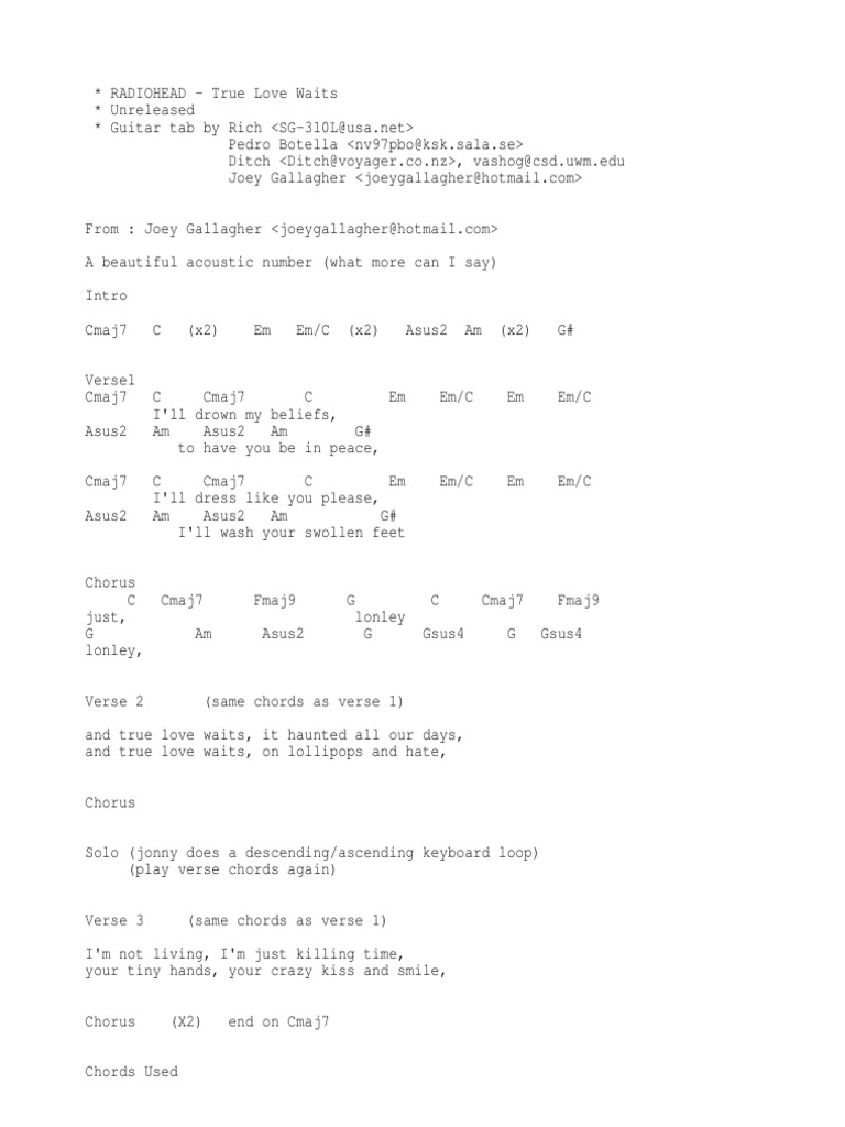 Baixar True Love Waits Musica : Chris Richter True Love Waits Guitar Tab In C Major Download Print Sku Mn0196371 _ Baixar true love waits musica :